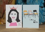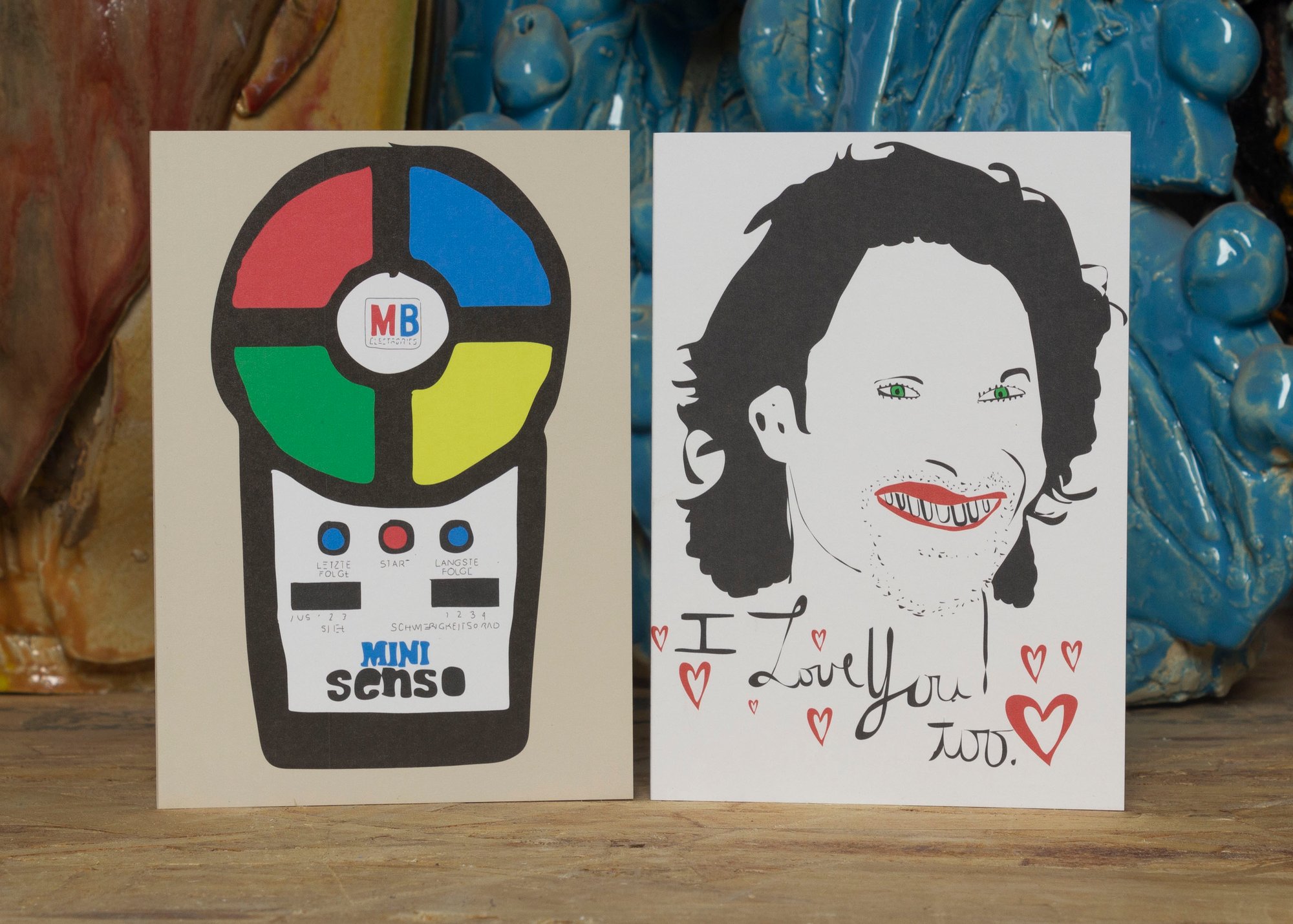 Printed from original Illustrator drawings from the 2000s. Cards are 4.5 x 6", blank inside with white envelope. Sold in set of 10 unique cards.